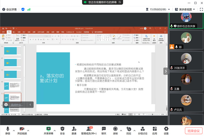 为持续促进公司考研学子坚定信念、明确目标、调整心态,增强员工在研究生复试阶段的应试能力,1月26日,公司举办了“物新讲堂”优秀员工线上考研经验交流会。