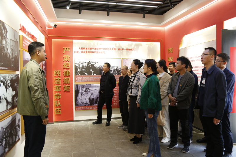 一行人随后前往了渡江战役总前委旧址陈列馆进行参观学习。渡江战役是中国革命历史上的一次重要战役,总前委旧址陈列馆以其丰富的历史资料和实物展品,生动再现了那段波澜壮阔的革命岁月。党员师生们在参观中深受教育,对革命先辈们的英勇斗争和无私奉献精神有了具象且深刻的认识。