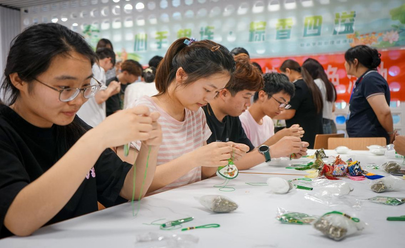 活动现场,艾香传承古韵,针线游离指间,欢声笑语中同学们分享着各地各民族的端午习俗,享受节日带来乐趣的同时,也感受着传统文化的魅力和温暖。