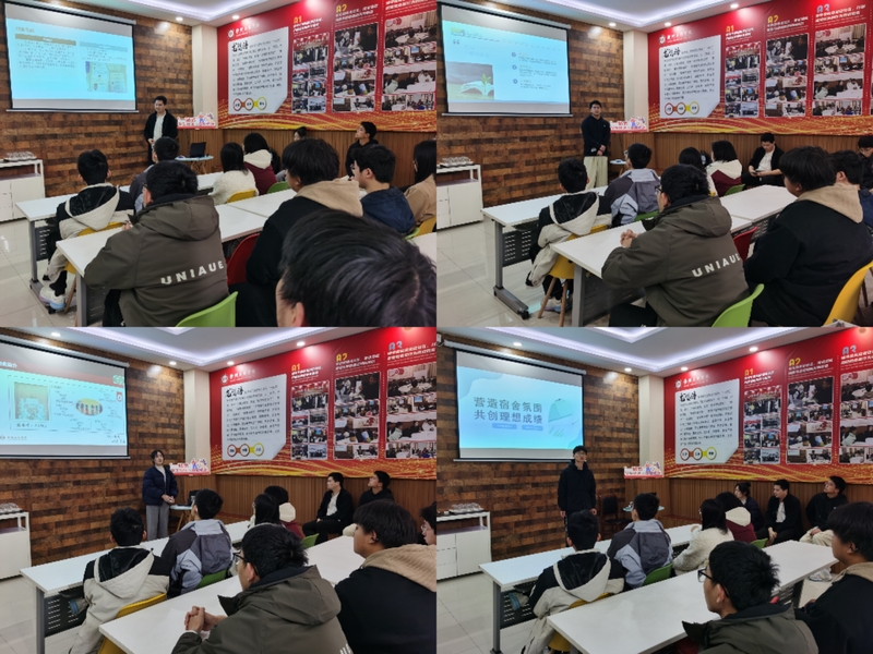 本次分享会邀请了2022级的奚明哲、陈树翔、姚雨欣、季雨洁四位同学作为主讲嘉宾。他们是物新公司22级优秀员工代表,所在宿舍成员几乎全员斩获奖学金,堪称学霸宿舍。分享会上,他们热情洋溢地向新生们分享了自己独特的学习经验,讲述参与校园活动时的难忘趣事,还对奖学金评选流程、所需条件及要求展开细致且全面的讲解。面对学弟学妹们,他们诚恳地提醒道,大学四年时光,绝非仅仅是不断积累知识的重要阶段,更是个人在成长蜕变、社交能力塑造以及职业规划布局等多维度实现飞跃发展的关键时期。因此,大家在大学期间不能仅将目光聚焦于学习成绩,更要踊跃投身各类竞赛与实践活动,全方位提升自身综合素质。同时,他们着重强调了宿舍成员间交流互动的重要性。在他们看来,和谐融洽、积极向上的宿舍学习氛围,能让大家彼此激励、相互学习,在优势互补中共同进步。活动现场氛围高涨,大一学子们纷纷举手提问,学长学姐们则耐心倾听并解答,一来一往间,现场形成了浓厚而良好的互动氛围。